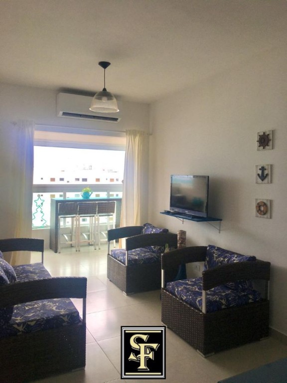 Apartamento, possui 2 dormitórios sendo 1 suíte com sacada, sala com sacada, cozinha, área de serviço, banheiro social e 1 vaga de garagem. Prédio com piscina, salão de festas e jogos, sala fitness, brinquedoteca e localizado em frente ao mar. Proprietário aceita financiamento bancário e estuda proposta a vista.