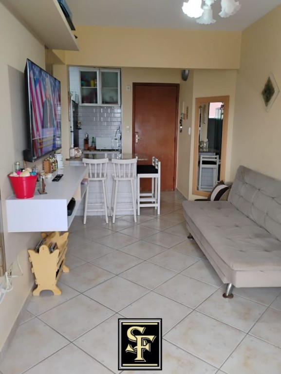 Apartamento, possui 1 dormitório, sala com sacada gourmet, cozinha tipo americana, banheiro social, área de serviço e 1 vaga de garagem. Prédio com salão de jogos, salão de festas, piscina, portaria 24 horas e localizado em frente ao mar. Proprietário aceita financiamento bancário e estuda proposta a vista.